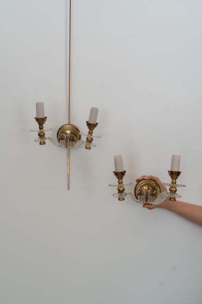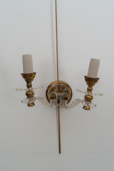 PAREJA DE APLIQUES. AÑOS 50. FRANCIA. LATÓN Y METACRILATO. 22X14X16 CMS