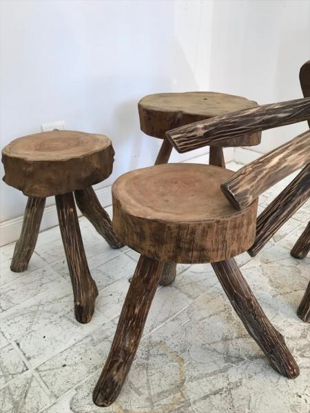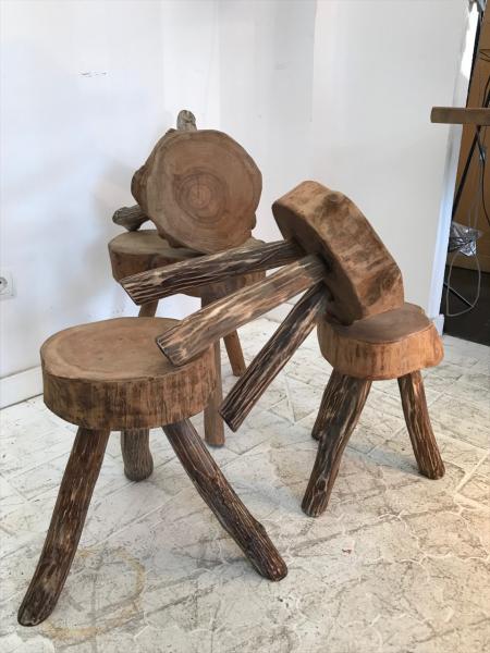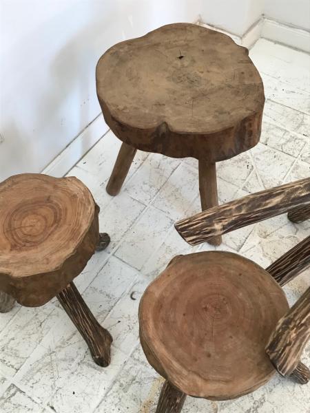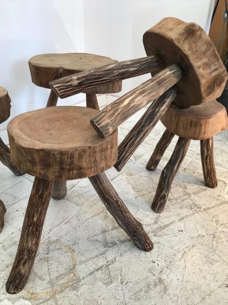5 TABURETES PRIMITIVOS. MADERA. 25-29 diámetro x 42-45 H CMS