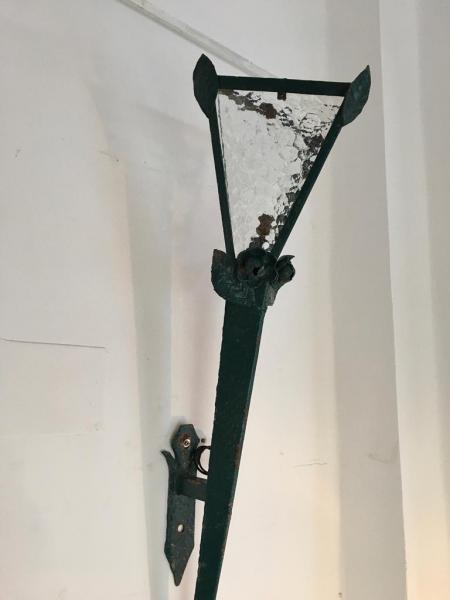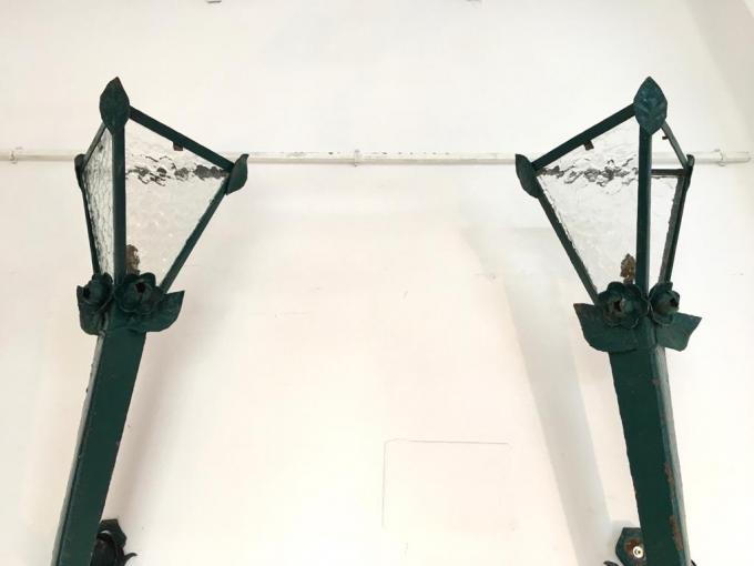 PAREJA DE APLIQUES - FAROLES. HIERRO Y CRISTAL. 31X28X125 CMS