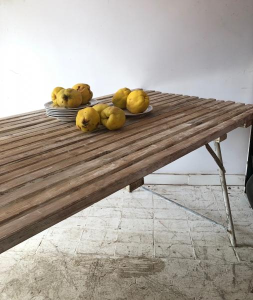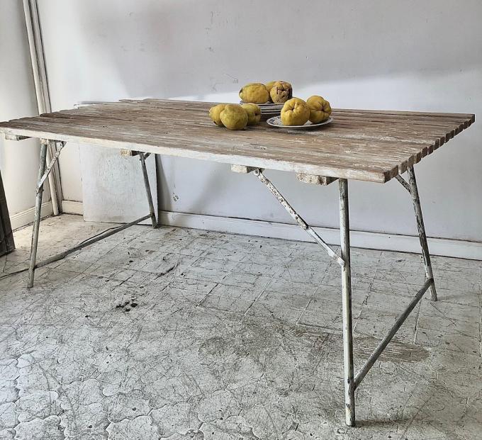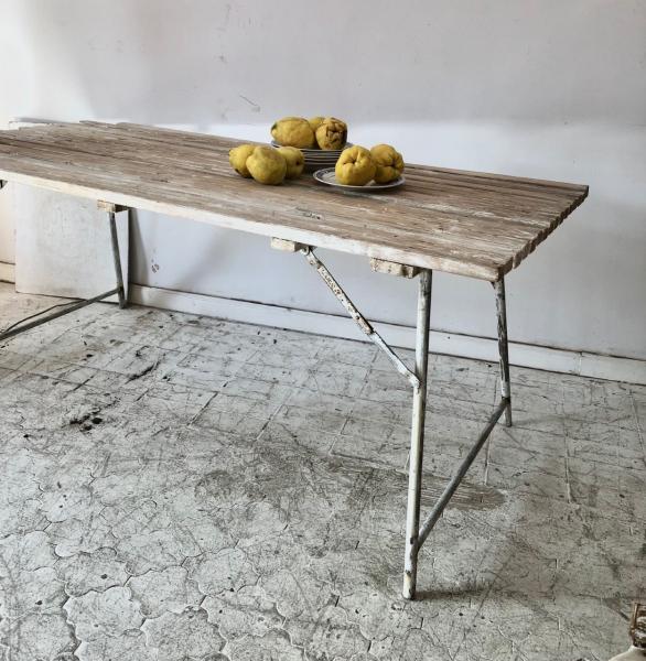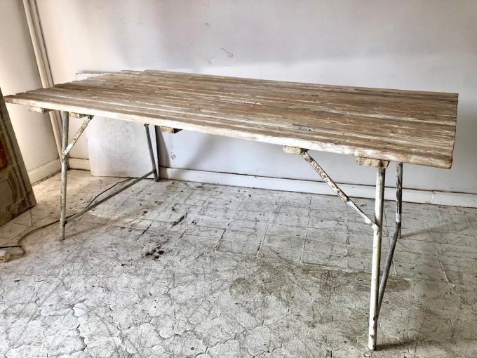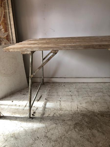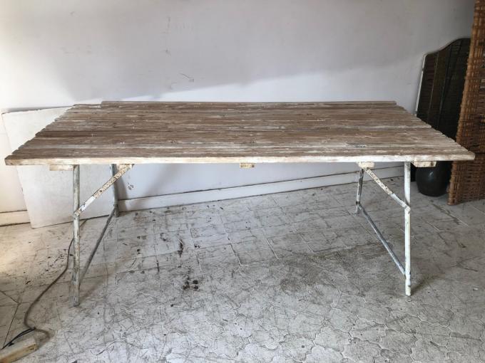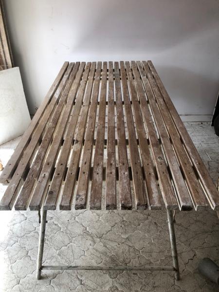 MESA DE EXTERIOR PLEGABLE. HIERRO Y MADERA. 181X83X75 CMS