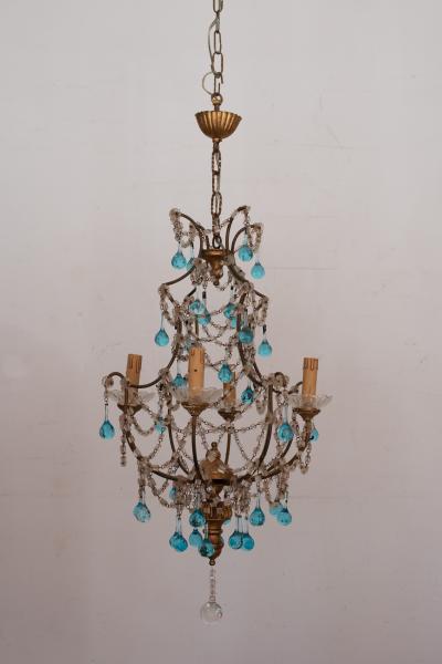 LÁMPARA TECHO. AÑOS 50. ITALIA. HIERRO MADERA Y CRISTAL 40X90 CMS