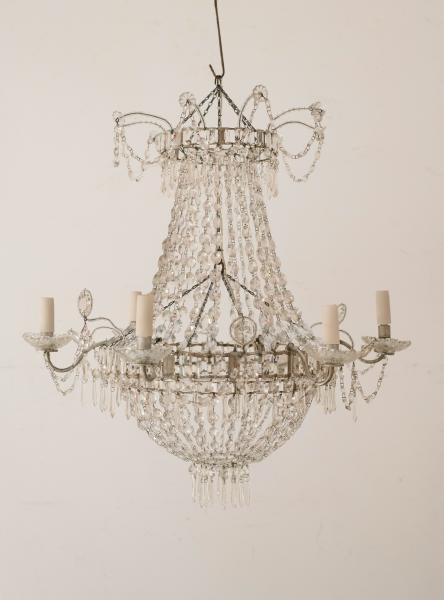 LÁMPARA DE TECHO. SXIX. FRANCIA. CRISTAL Y HIERRO
