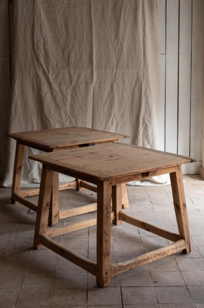 PAREJA DE MESAS. AÑOS 50. ESPAÑA. PINO. 83X83X67 CMS