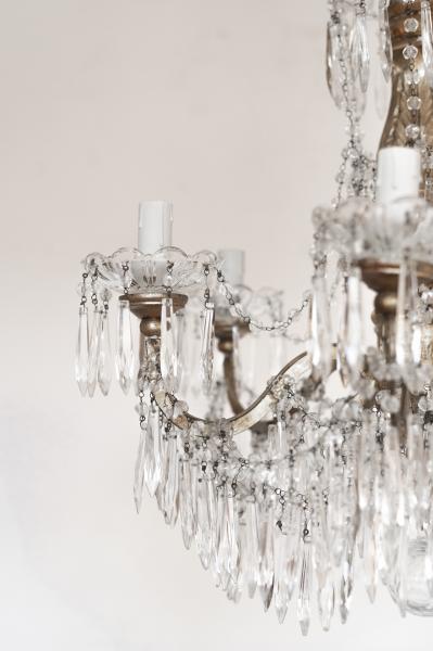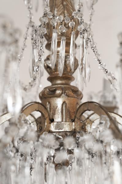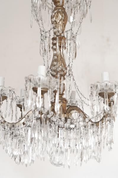 LÁMPARA TECHO. SXIX. ITALIA. MADERA Y CRISTAL. 50X85 CMS