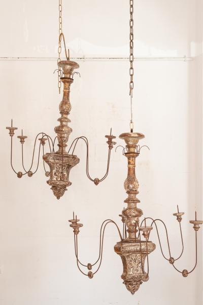 PAREJA DE LÁMPARAS DE TECHO. SXIX. FRANCIA. MADERA Y HIERRO. 85X100 CMS
