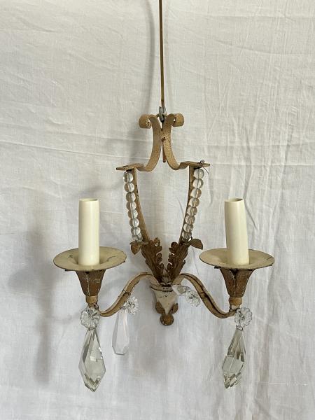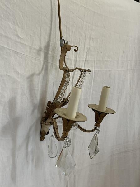 APLIQUE. AÑOS 40. FRANCIA. HIERRO Y CRISTAL. 25X19X32 CMS