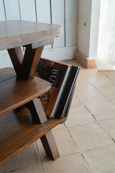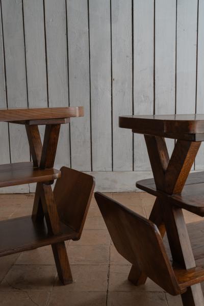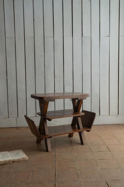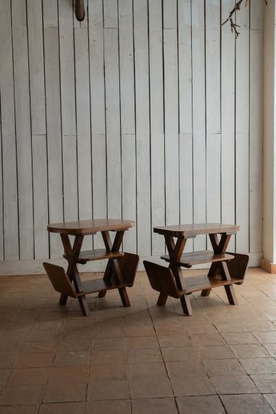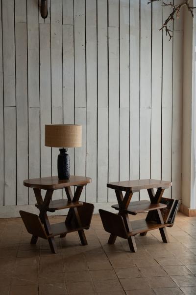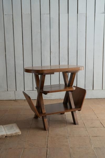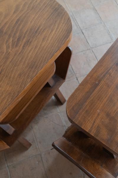 2 MESAS. AÑOS 50. FRANCIA. NOGAL. 81X33X59 CMS / 69X45X63 CMS