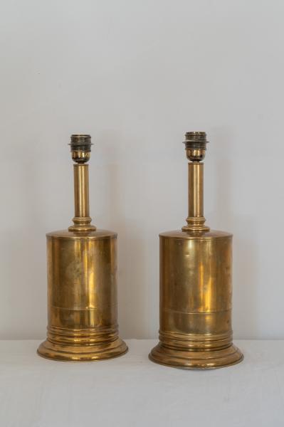 PAREJA DE LÁMPARAS DE MESA. AÑOS 80. ESPAÑA. LATÓN. 19X38 CMS