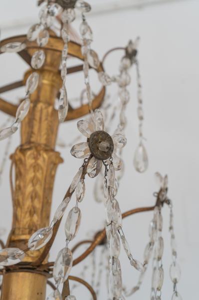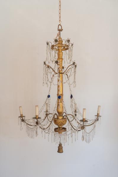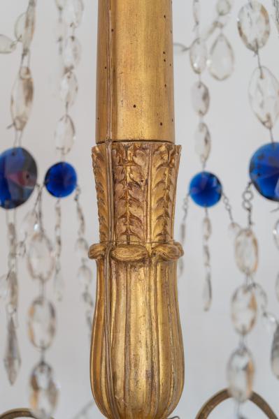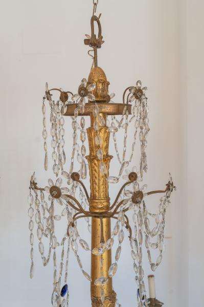 PAREJA DE LÁMPARAS DE TECHO. PRINCIPIOS SXIX. ITALIA. MADERA, CRISTAL Y HIERRO. 86X135 CMS