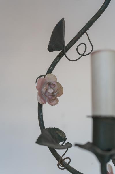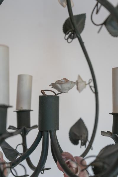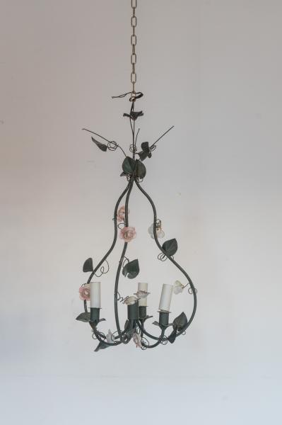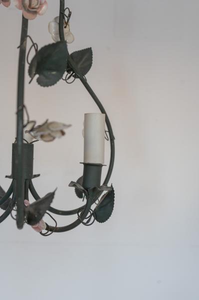 1 LÁMPARA DE TECHO. AÑOS 60. FRANCIA. HIERRO Y PORCELANA. 32X60 CMS