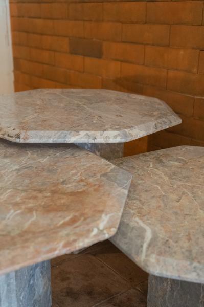 CONJUNTO 3 MESAS. AÑOS 70. ITALIA. MÁRMOL. 65X(32X36X40) CMS