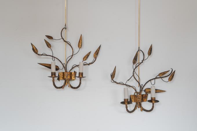 PAREJA DE APLIQUES. AÑOS 60. ITALIA. HIERRO. 40X10X37 CMS