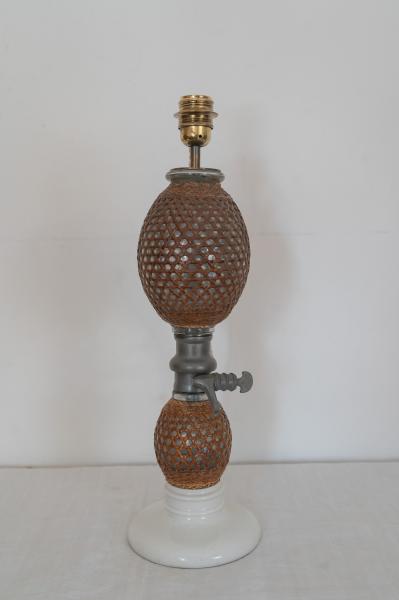 LÁMPARA DE MESA. AÑOS 50. FRANCIA. CRISTAL Y PORCELANA. 16X50 CMS