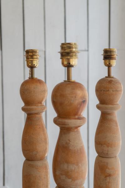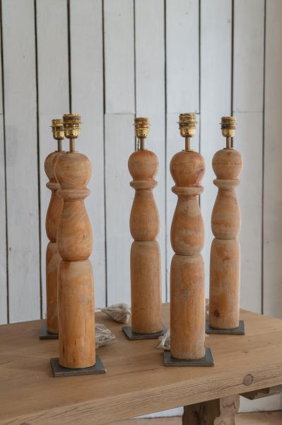9 LÁMPARAS DE MESA. FRANCIA. MADERA. 12X12X50 CMS