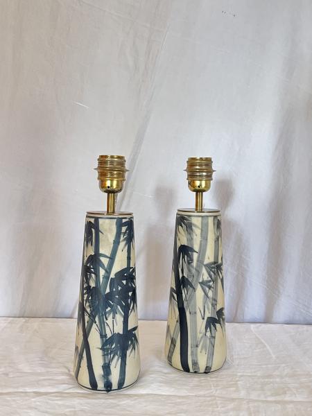 PAREJA DE LÁMPARAS DE MESA. AÑOS 60. FRANCIA. PORCELANA. 10X27 CMS