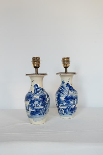 PAREJA DE LÁMPARAS DE MESA. AÑOS 60. FRANCIA. LOZA. 13X28 CMS