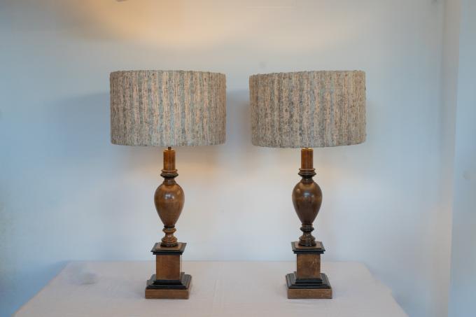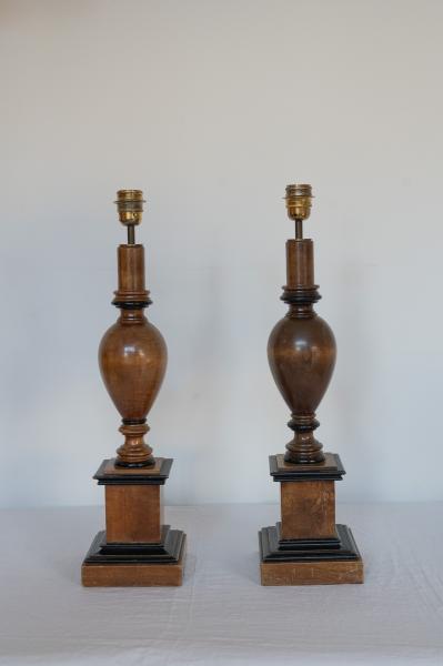 PAREJA DE LÁMPARAS DE MESA DE PIERRE LOTTIER. AÑOS 50. FRANCIA. MADERA. 16X16X57 CMS