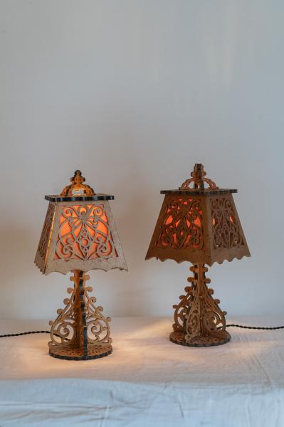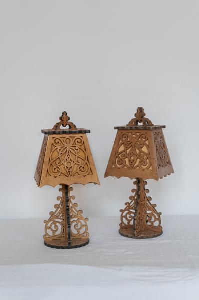 PAREJA DE LÁMPARAS DE MESA. PRINCIPIO SXX. FRANCIA. MADERA. 19X18X44 CMS