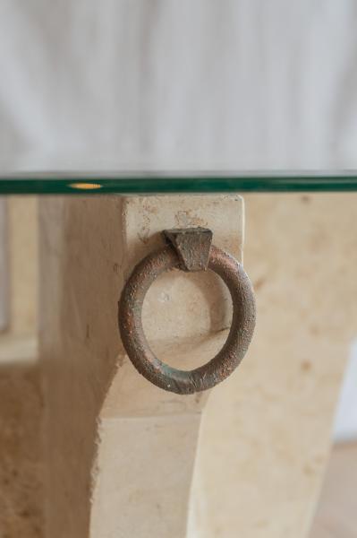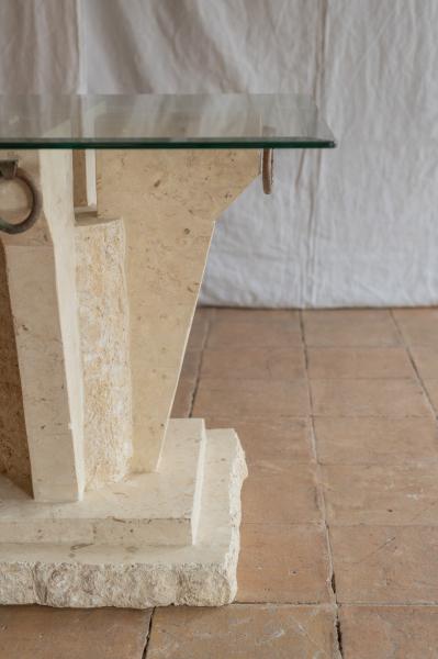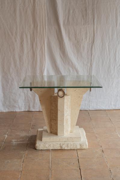 MESA. AÑOS 70. FRSNCIA. PIEDRA Y CRISTAL. 60X60X50 CMS